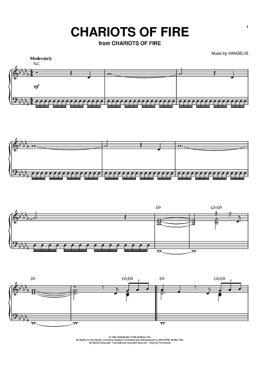 Digital Sheet Music for Chariots Of Fire by Vangelis scored for Piano; id:383714