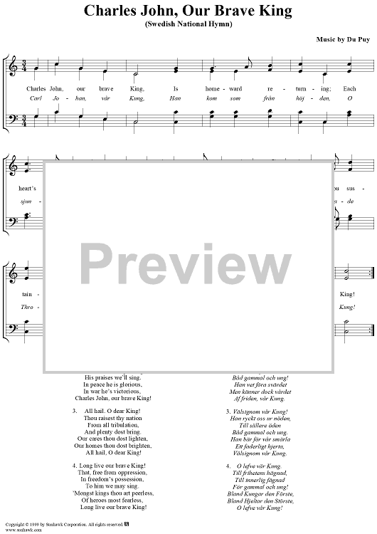 Digital Sheet Music for Charles John, Our Brave King by Du Puy scored for Four-part Mixed Chorus; id:114188