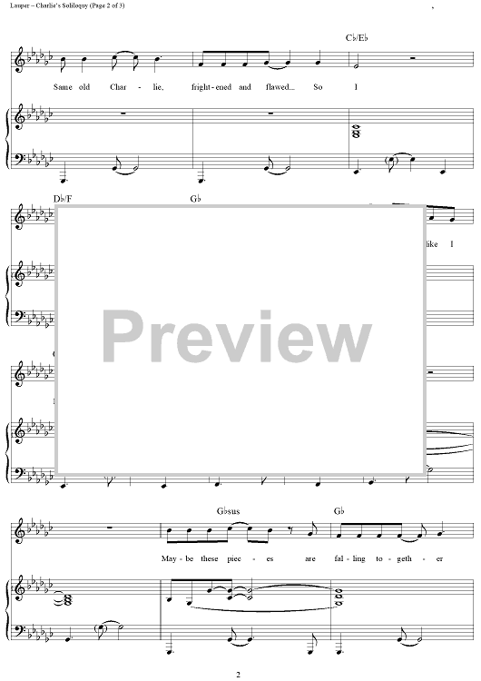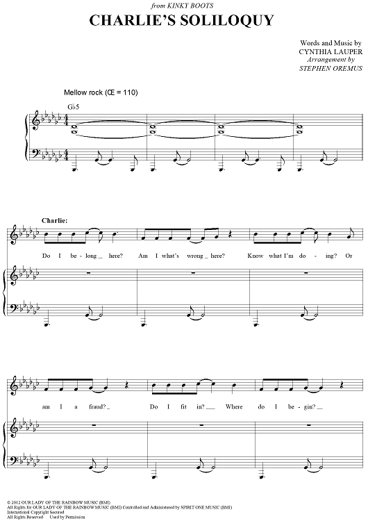 Digital Sheet Music for Charlie's Soliloquy by Cyndi Lauper, Stephen Oremus scored for Piano/Vocal/Chords; id:436606