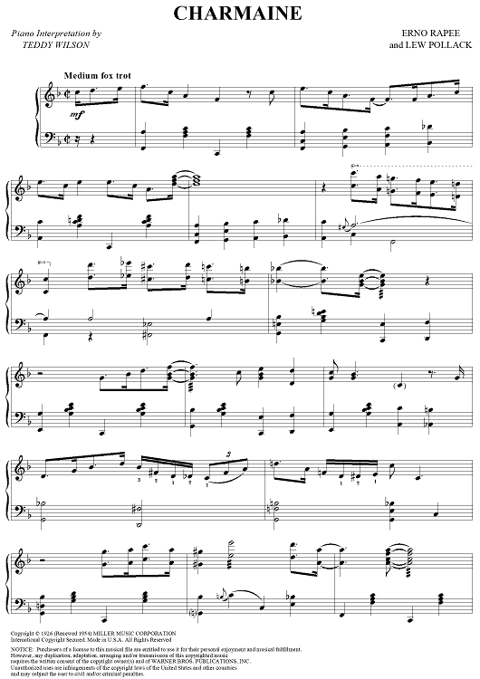 Digital Sheet Music for Charmaine by Teddy Wilson, Lew Pollack, Erno Rapee scored for Piano Solo; id:315900