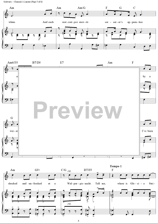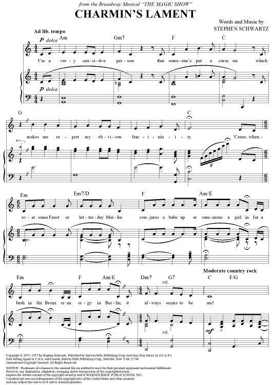 Digital Sheet Music for Charmin's Lament by Stephen Schwartz, Doug Henning scored for Piano/Vocal/Chords; id:356251