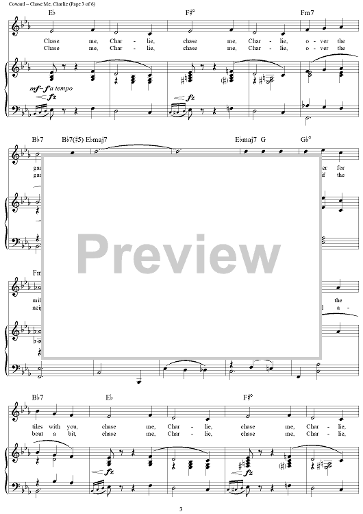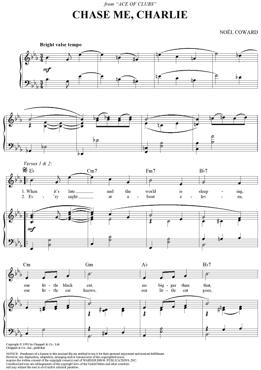 Digital Sheet Music for Chase Me, Charlie by Noel Coward scored for Piano/Vocal/Chords; id:356885