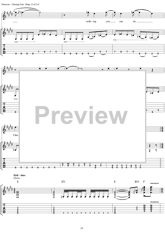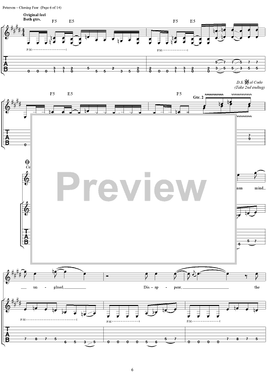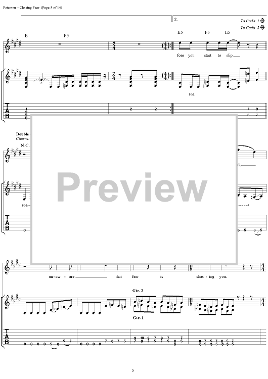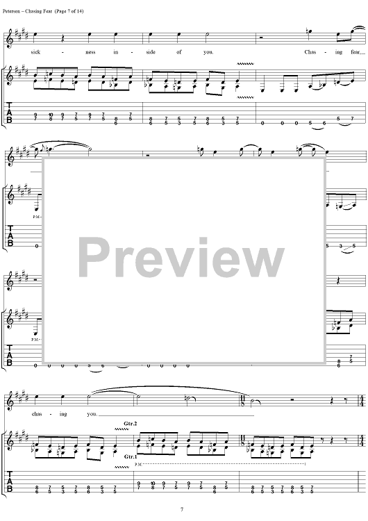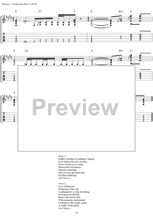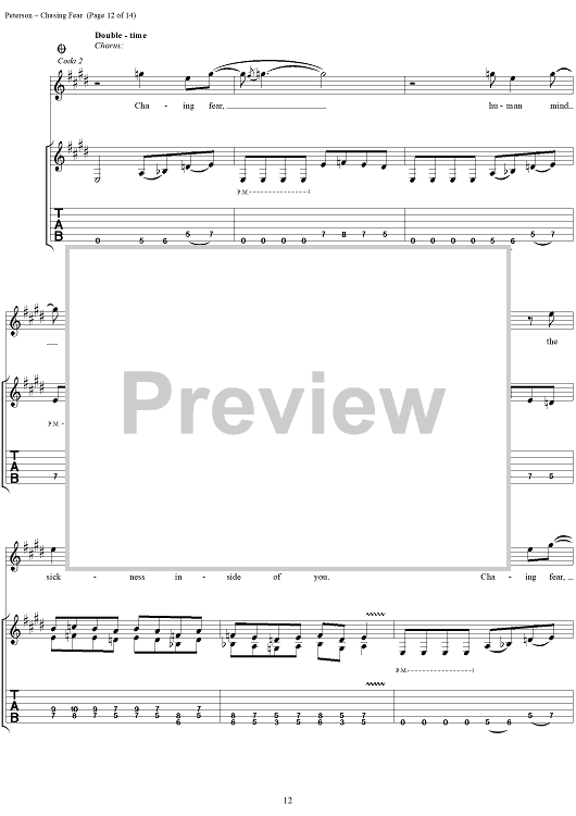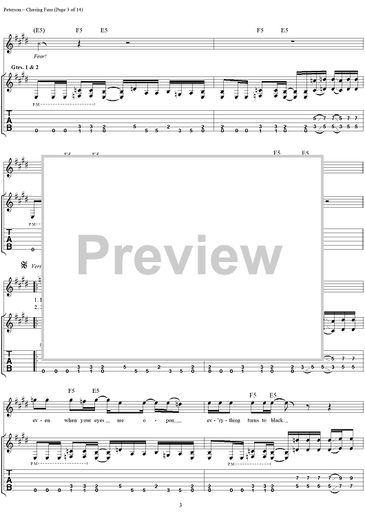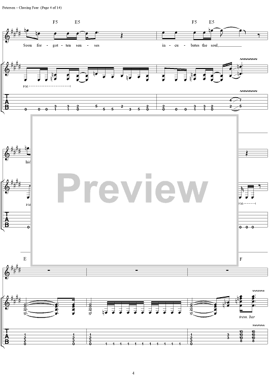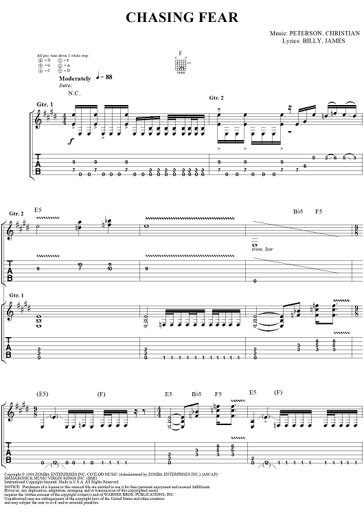 Digital Sheet Music for Chasing Fear by Eric Peterson, Chuck Billy, James Murphy, Greg Christian, Testament scored for Guitar Tab/Vocal; id:114399