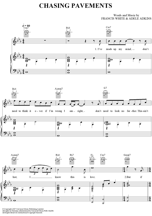 Digital Sheet Music for Chasing Pavements by Francis White, Adele Adkins, Adele scored for Piano/Vocal/Chords; id:404550