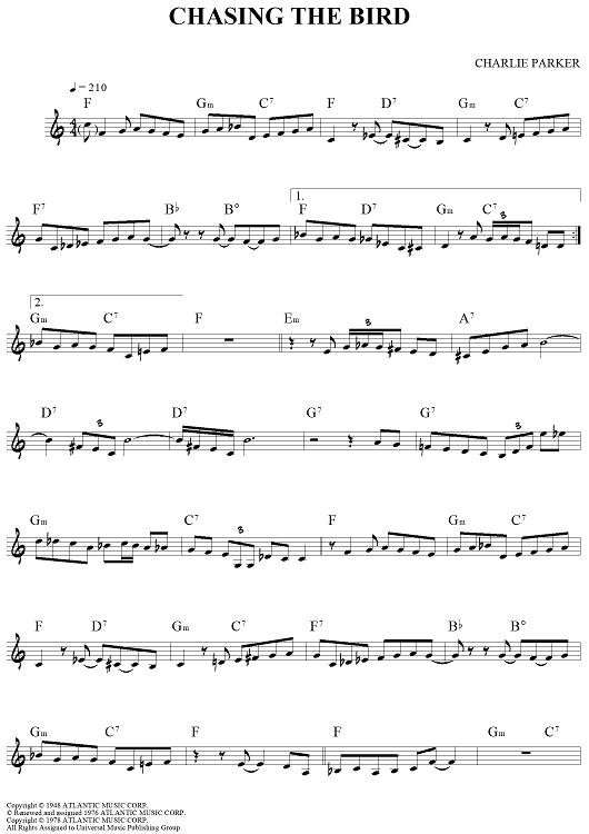 "Chasing The Bird" Sheet Music by Charlie Parker