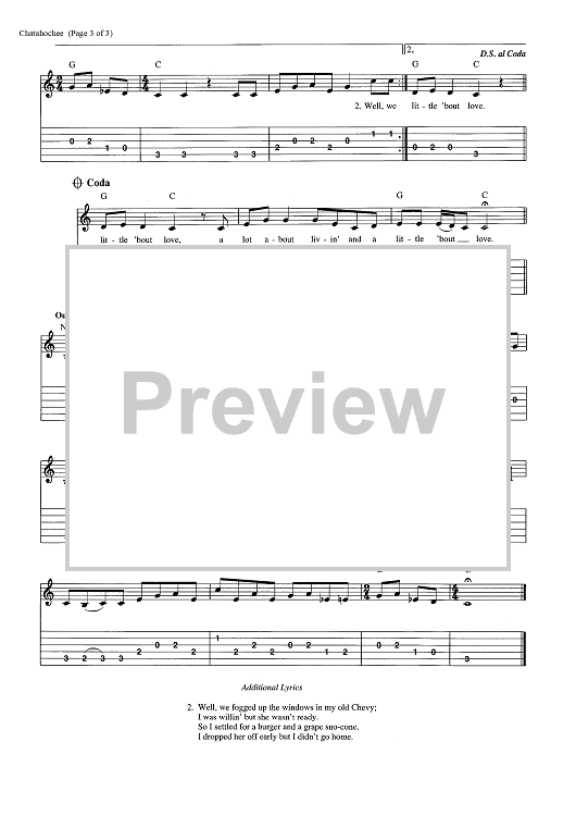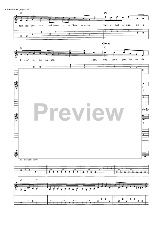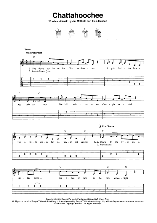 Digital Sheet Music for Chattahoochee by Jim McBride, Al Jackson Jr scored for Easy Guitar Tab/Vocal/Chords; id:456715
