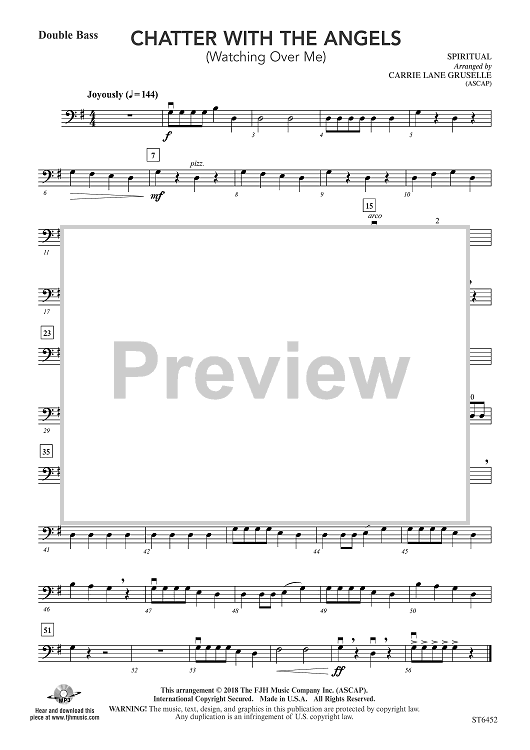 Digital Sheet Music for Chatter with the Angels (Watching Over Me) - Double Bass by Spiritual, Carrie Lane Gruselle scored for String Orchestra; id:506708