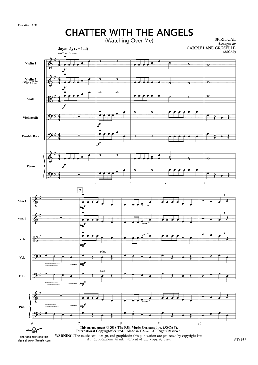 Digital Sheet Music for Chatter with the Angels (Watching Over Me) - Score by Spiritual, Carrie Lane Gruselle scored for String Orchestra; id:496975