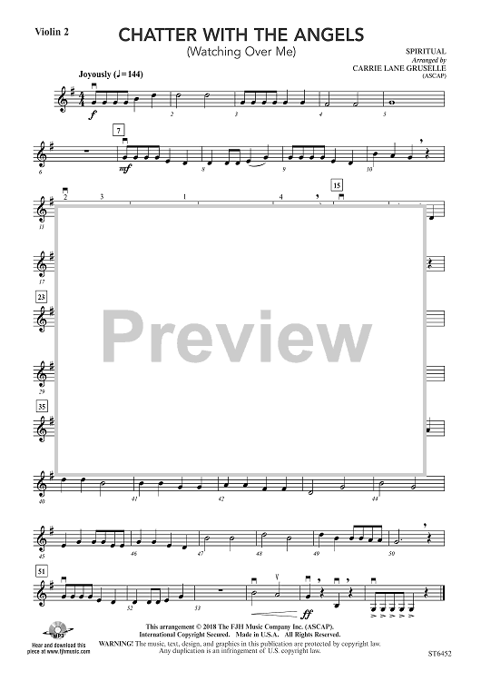 Digital Sheet Music for Chatter with the Angels (Watching Over Me) - Violin 2 by Spiritual, Carrie Lane Gruselle scored for String Orchestra; id:506705