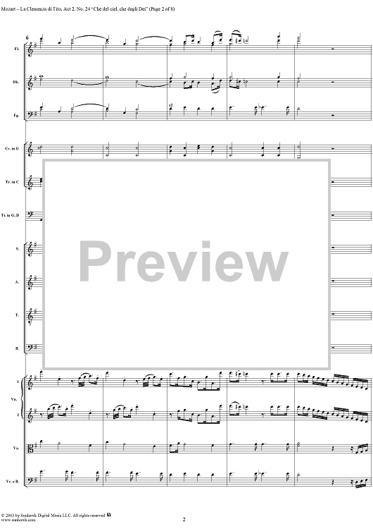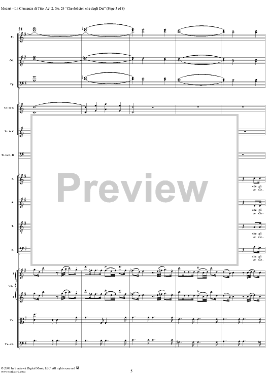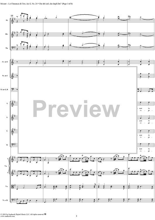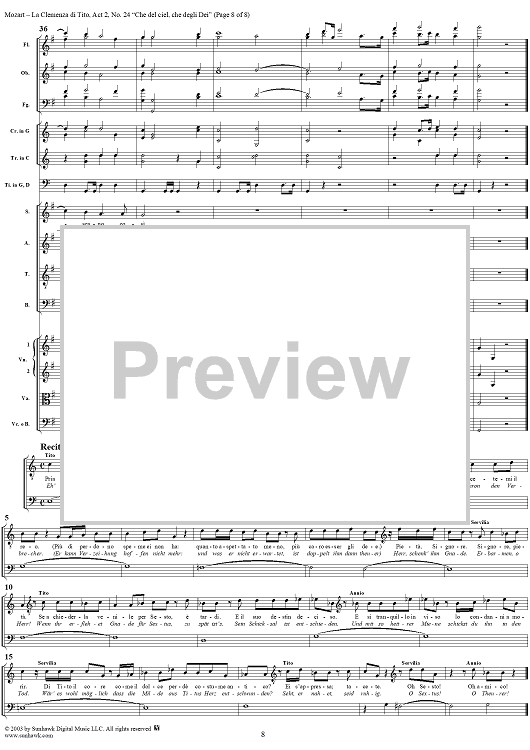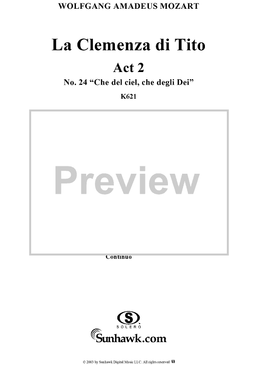 Digital Sheet Music for "Che del ciel, che degli Dei", No. 24 from "La Clemenza di Tito", Act 2 (K621) - Full Score by Wolfgang Amadeus Mozart scored for Voice and Orchestra; id:291623