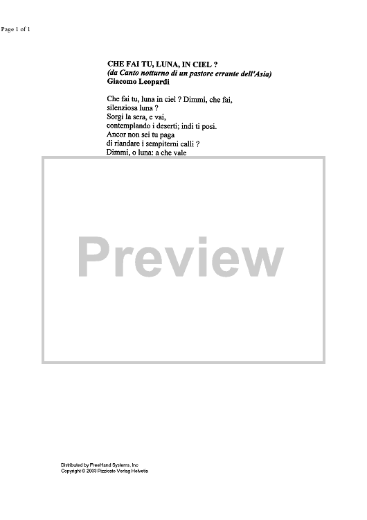 "Che fai tu, luna, in ciel? - Lyrics" Sheet Music by Alejandro Núñez Allauca