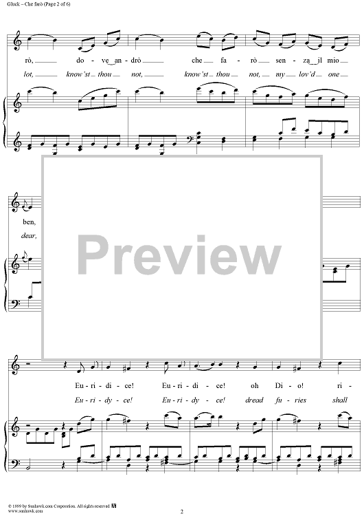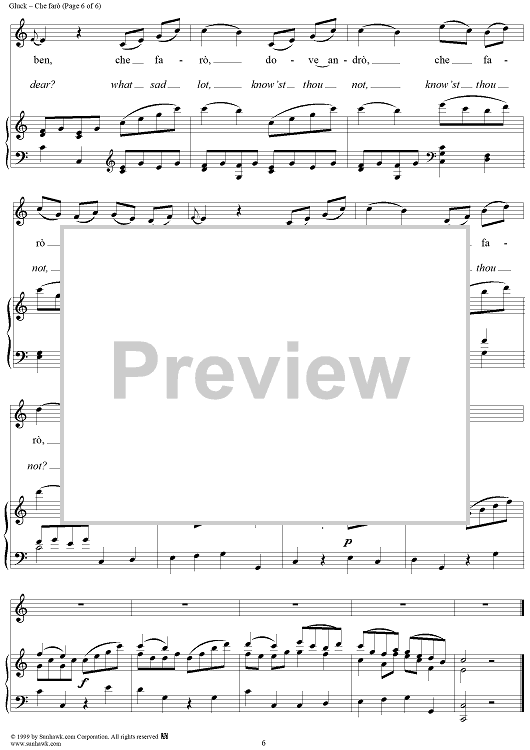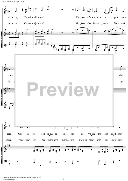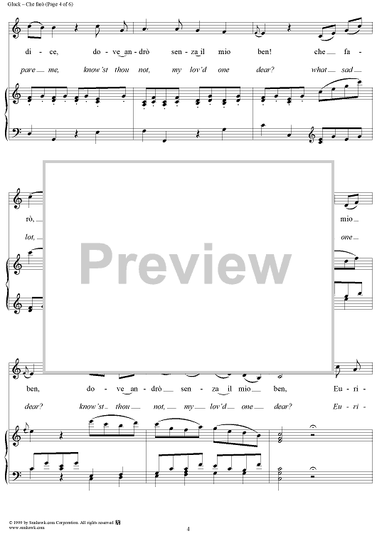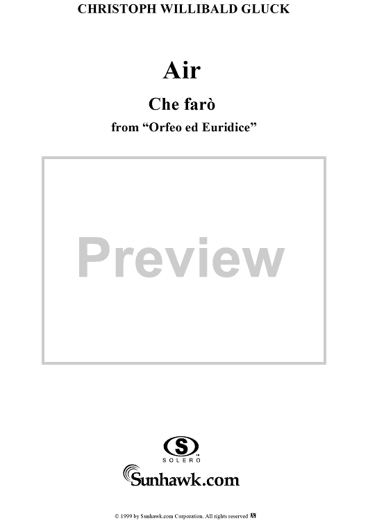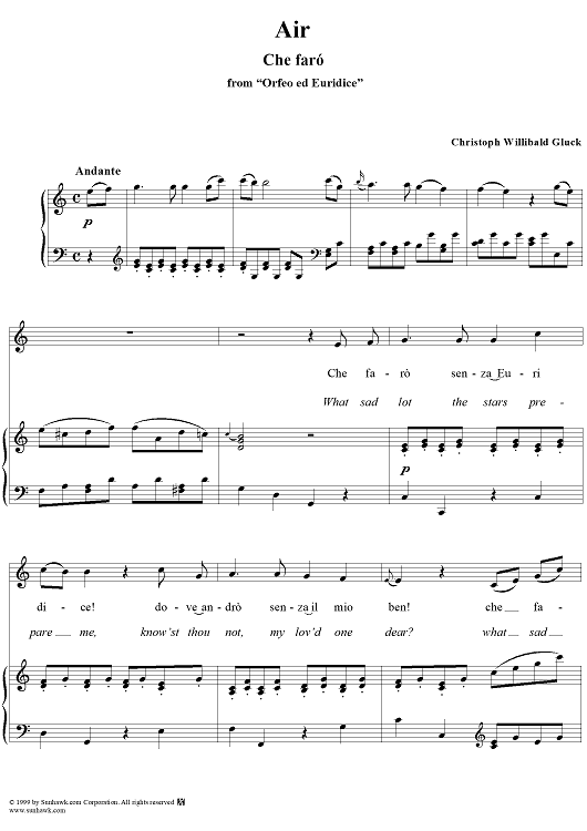 "Che faro" Sheet Music by Christoph Willibald Glück