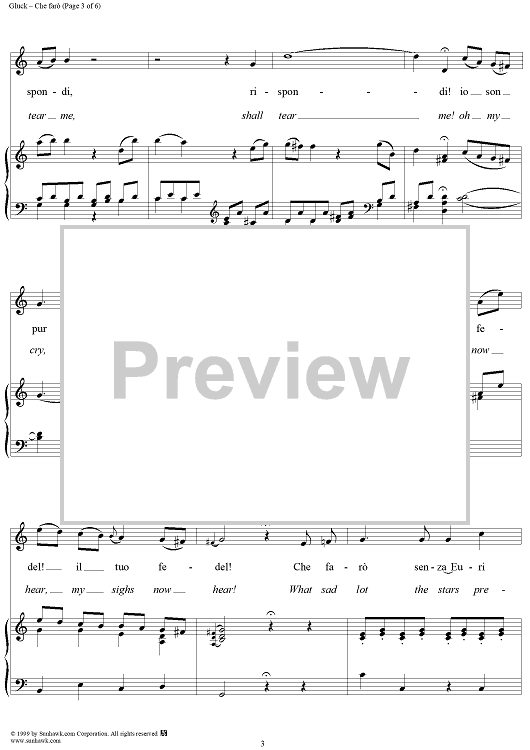 Digital Sheet Music for Che faro by Christoph Willibald Glück scored for Tenor/Piano; id:118202