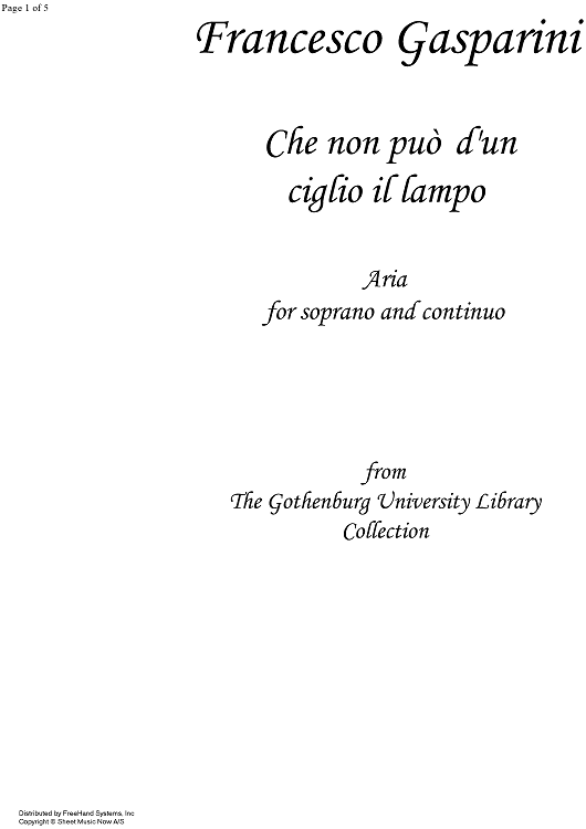 "Che non può d'un ciglio il lampo" Sheet Music by Francesco Gasparini