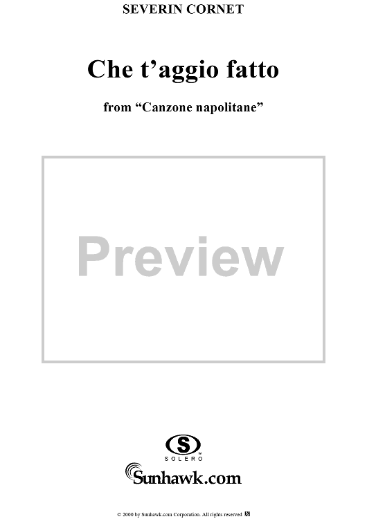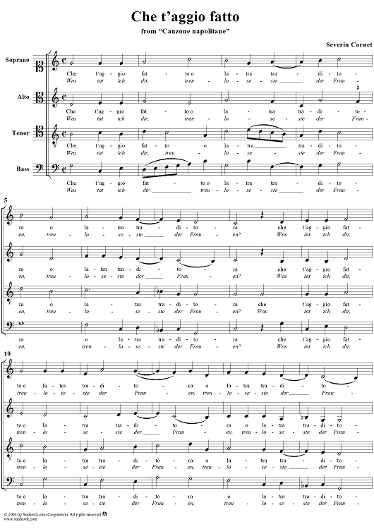 Digital Sheet Music for Che t'aggio fatto, from "Canzone napolitane" by Séverin Cornet scored for Four-part Mixed Chorus; id:276818