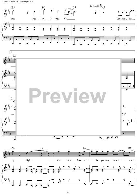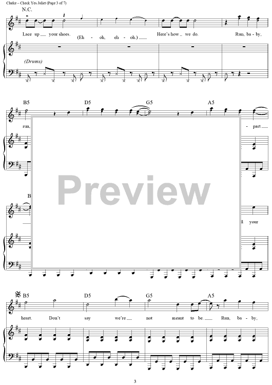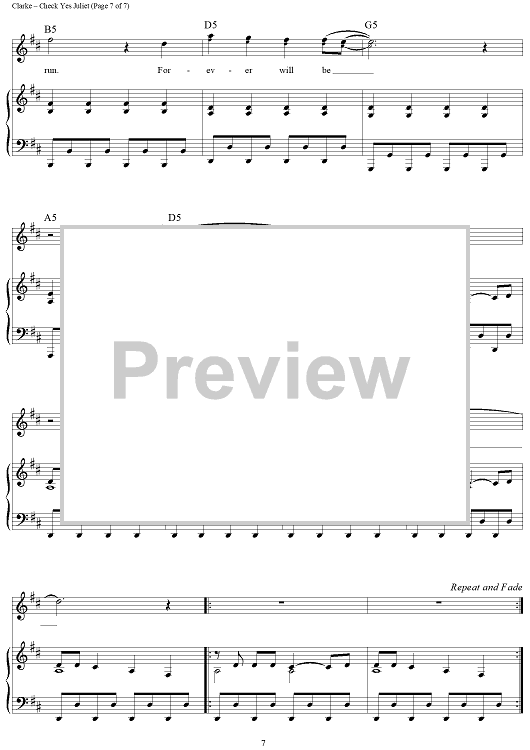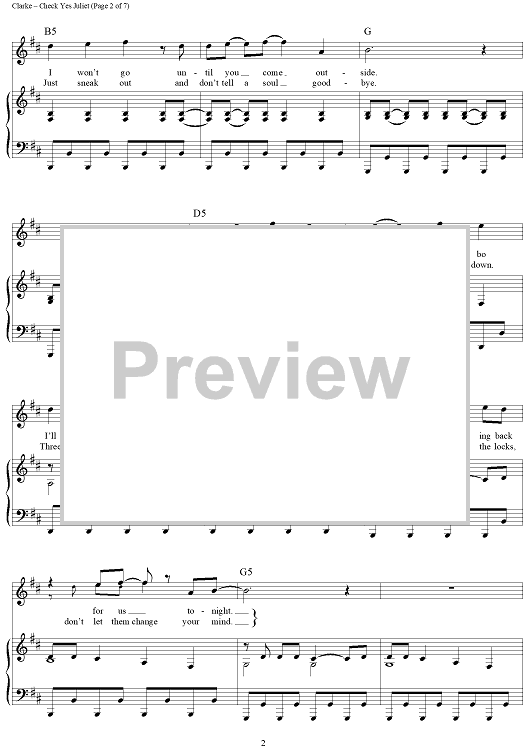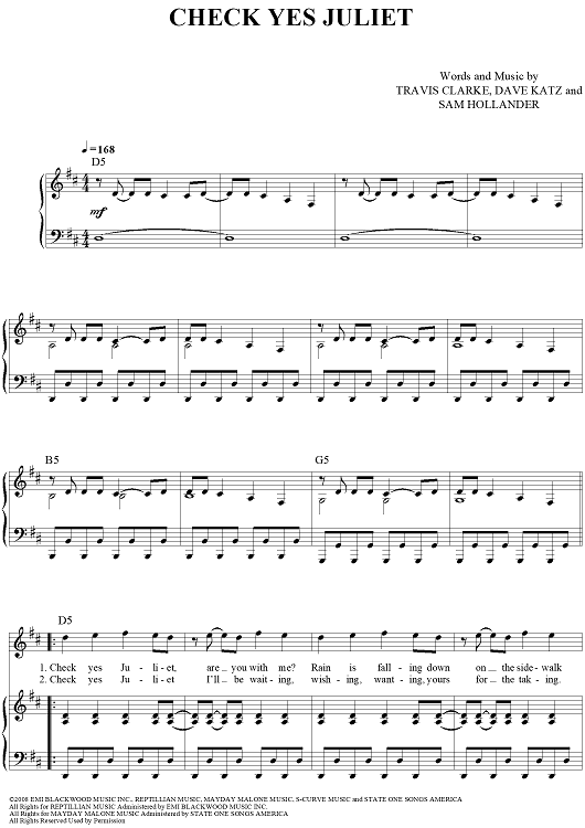 Digital Sheet Music for Check Yes Juliet by Dave Katz, Sam Hollander, Travis Clarke, We the Kings scored for Piano/Vocal/Chords; id:428958