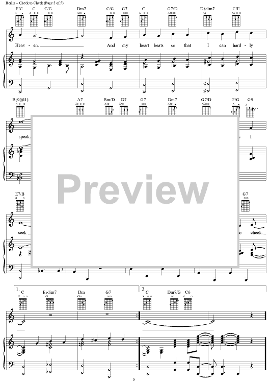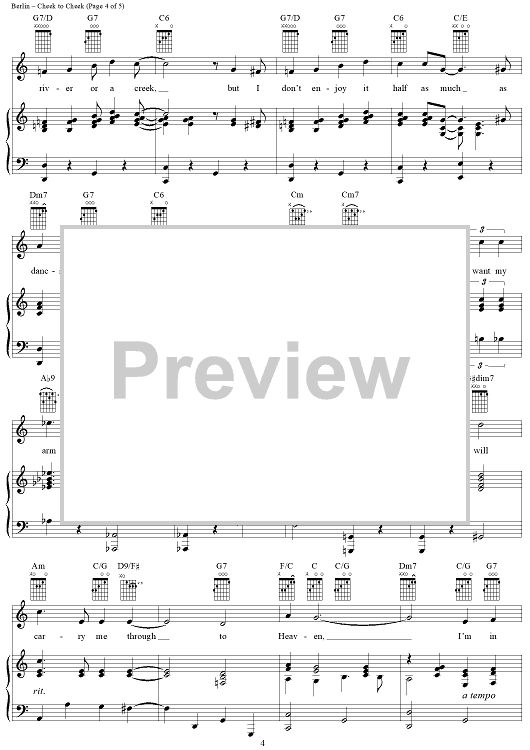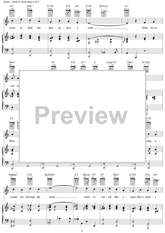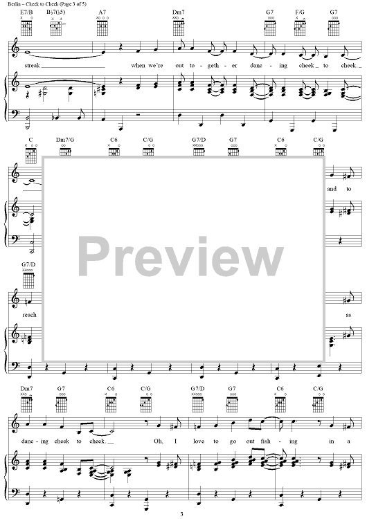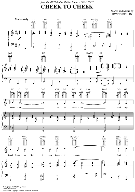 Digital Sheet Music for Cheek to Cheek by Irving Berlin scored for Piano/Vocal/Chords; id:366154