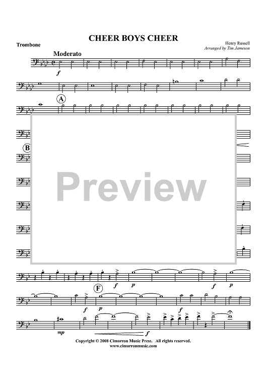 "Cheer Boys Cheer - Trombone" Sheet Music by Henry Russell