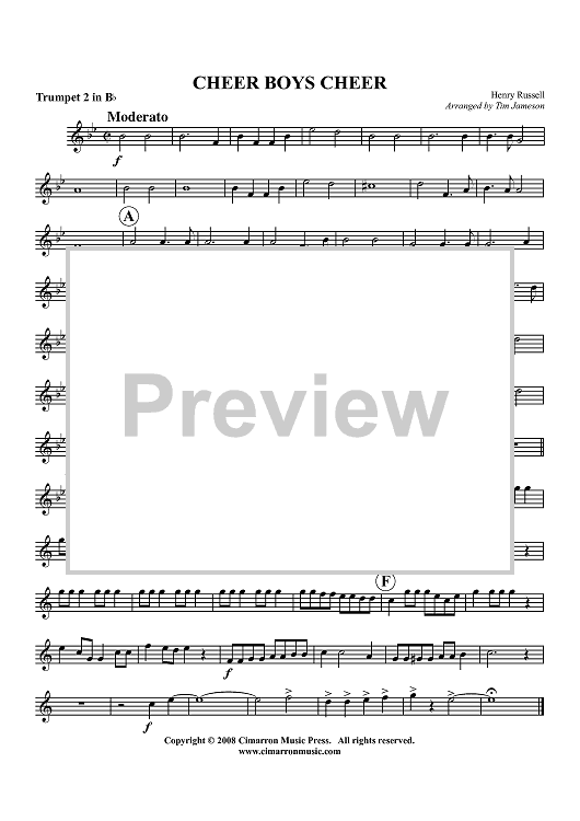 "Cheer Boys Cheer - Trumpet 2 in Bb" Sheet Music by Henry Russell