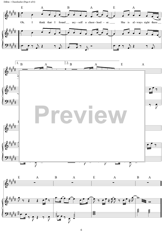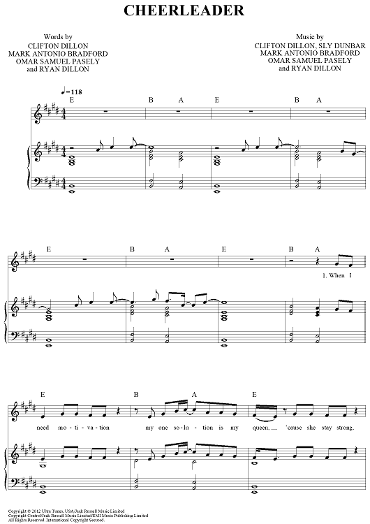 Digital Sheet Music for Cheerleader by Clifton Dillon, Sly Dunbar, Mark Antonio Bradford, Omar Samuel Pasely, Ryan Dillon, OMI scored for Piano/Vocal/Chords; id:451787