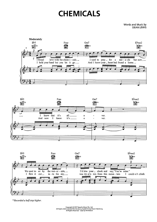 Digital Sheet Music for Chemicals by Dean Lewis scored for Piano/Vocal/Chords; id:467857