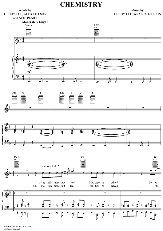 Digital Sheet Music for Chemistry by Rush, Geddy Lee, Alex Lifeson, Neil Peart scored for Piano/Vocal/Chords; id:241626