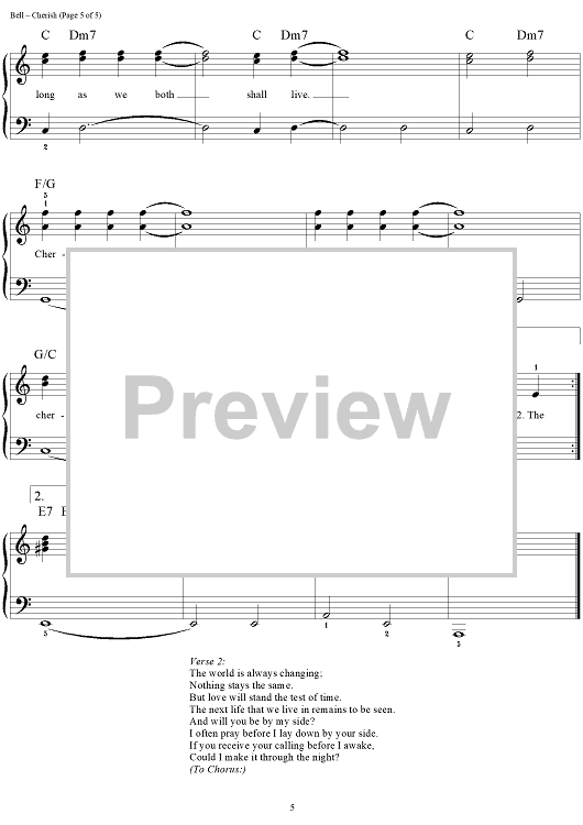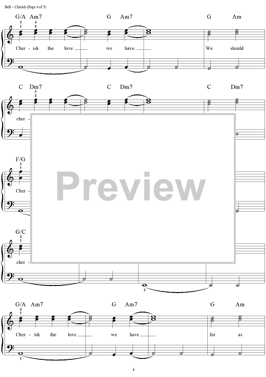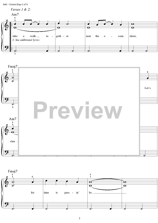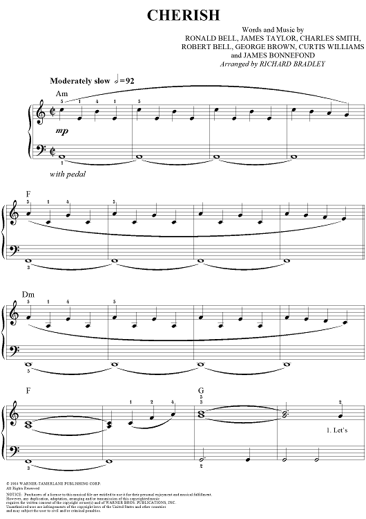 Digital Sheet Music for Cherish by Richard Bradley, Ronald Bell, Charles Smith, Robert Bell, George Brown, Curtis Williams, James Bonnefond, J.T. Taylor, Kool & The Gang scored for Easy Piano; id:288293