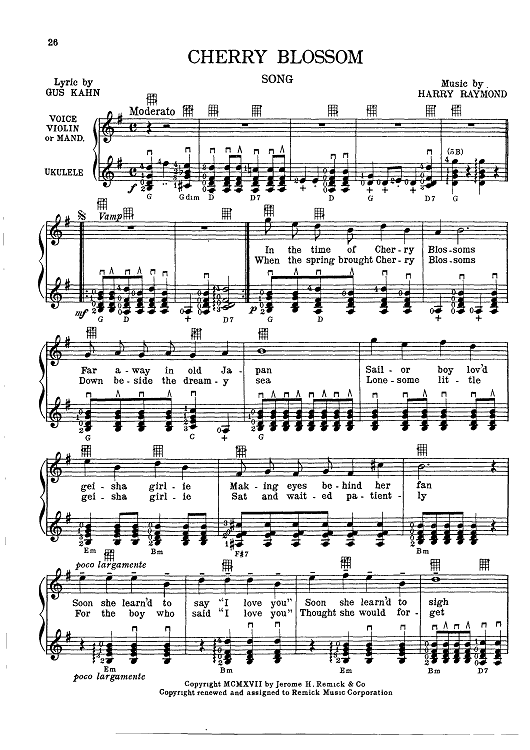 Digital Sheet Music for Cherry Blossom by , Gus Kahn, Harry Raymond scored for Ukulele; id:418520