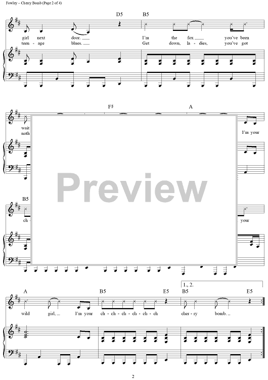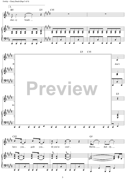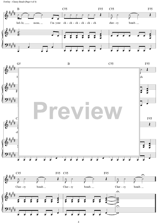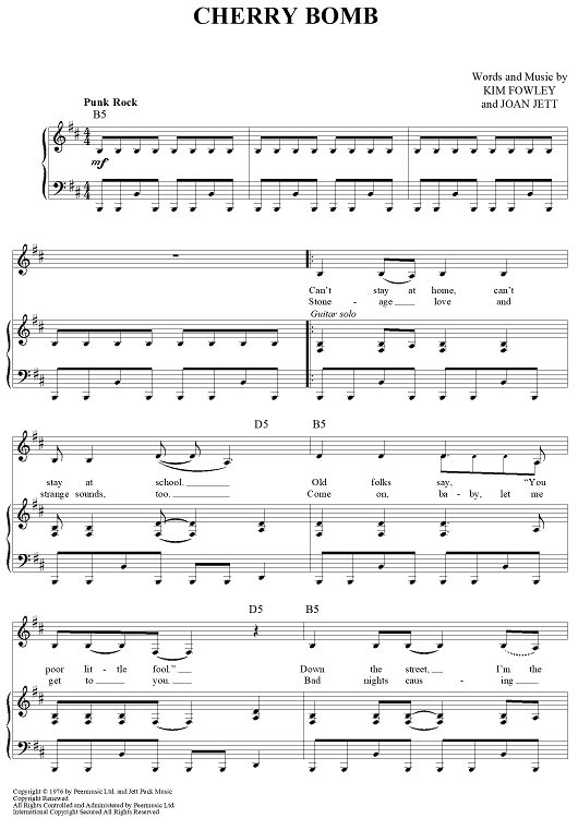Digital Sheet Music for Cherry Bomb by Joan Jett, Kim Fowley, The Runaways scored for Piano/Vocal/Chords; id:449263