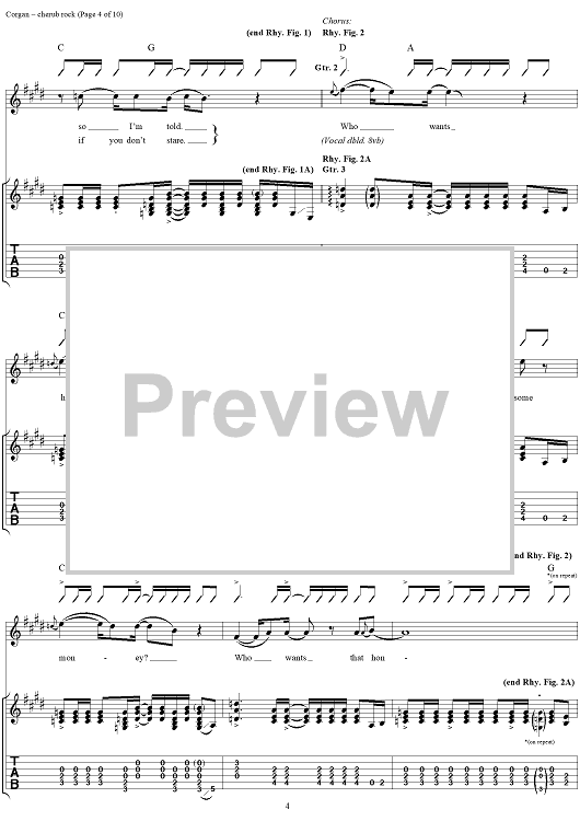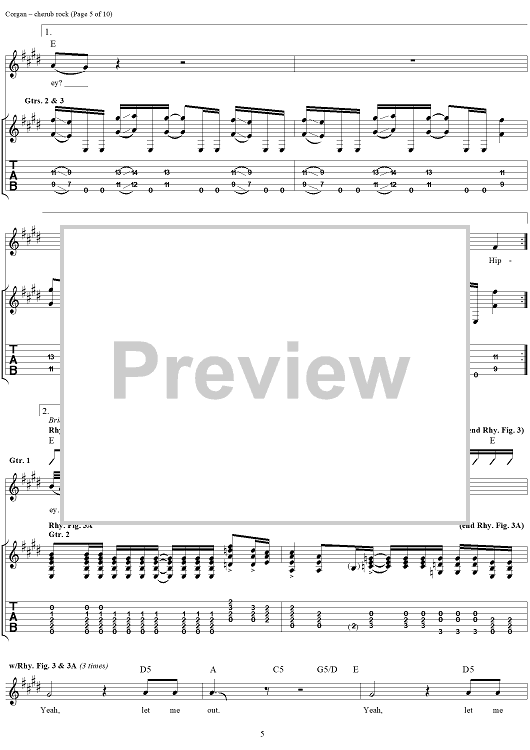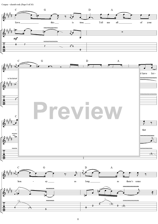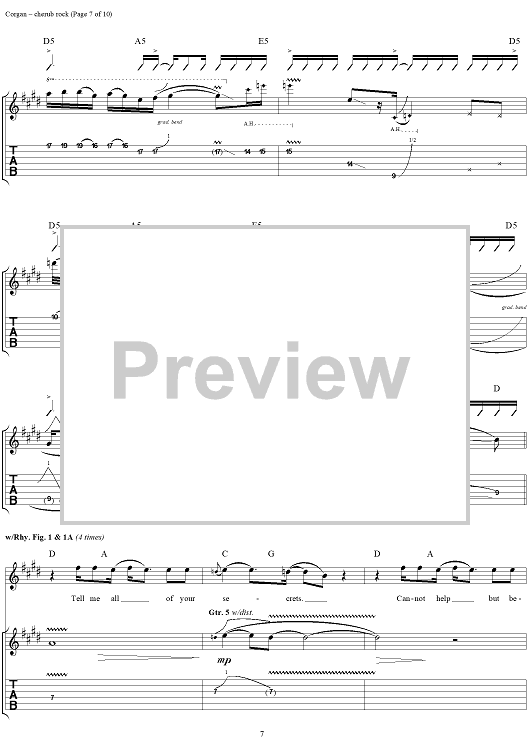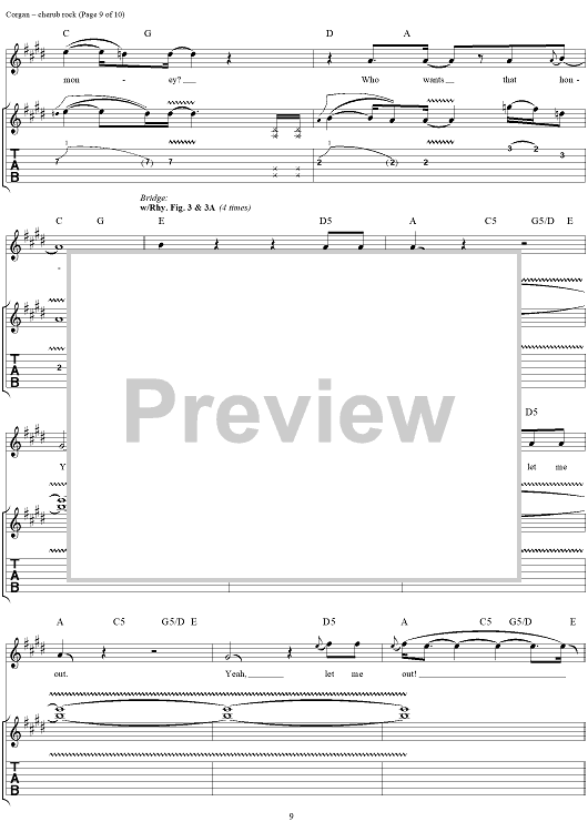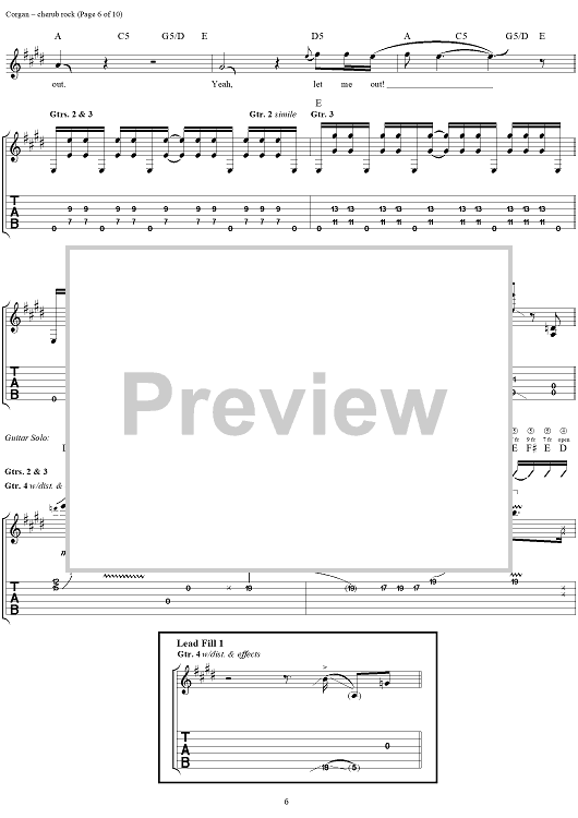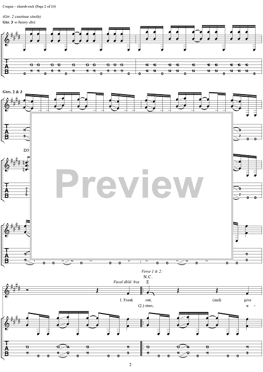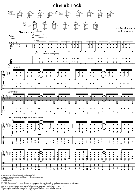 Digital Sheet Music for Cherub Rock by Billy Corgan, Smashing Pumpkins scored for Guitar Tab/Vocal; id:120898
