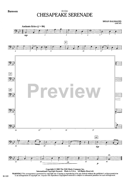 "Chesapeake Serenade - Bassoon" Sheet Music by Brian Balmages