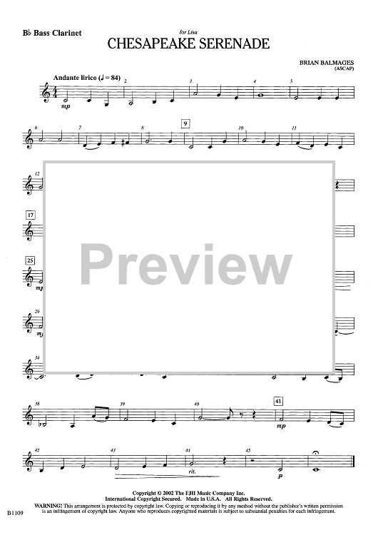 "Chesapeake Serenade - Bb Bass Clarinet" Sheet Music by Brian Balmages