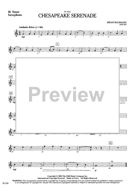 "Chesapeake Serenade - Bb Tenor Sax" Sheet Music by Brian Balmages