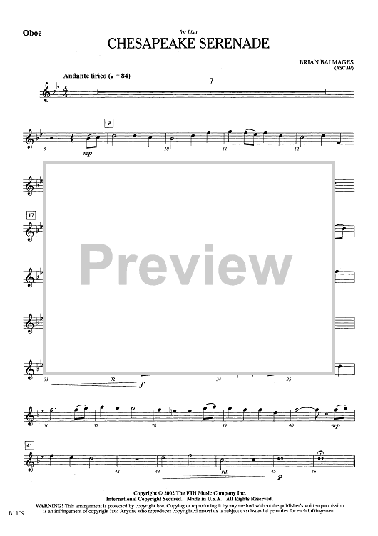 "Chesapeake Serenade - Oboe" Sheet Music by Brian Balmages