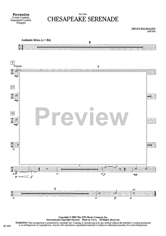 Digital Sheet Music for Chesapeake Serenade - Percussion by Brian Balmages scored for Concert Band; id:443033