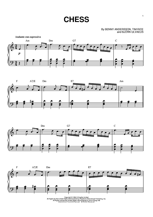 Digital Sheet Music for Chess by Tim Rice, Benny Andersson, Bjorn Ulvaeus scored for Piano; id:384004