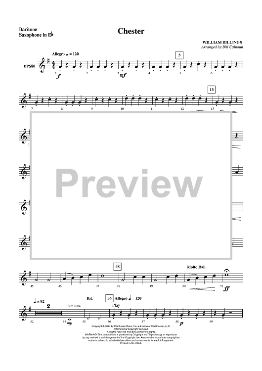 Digital Sheet Music for Chester - Baritone Sax by William Billings, Bill Calhoun scored for Concert Band; id:450666