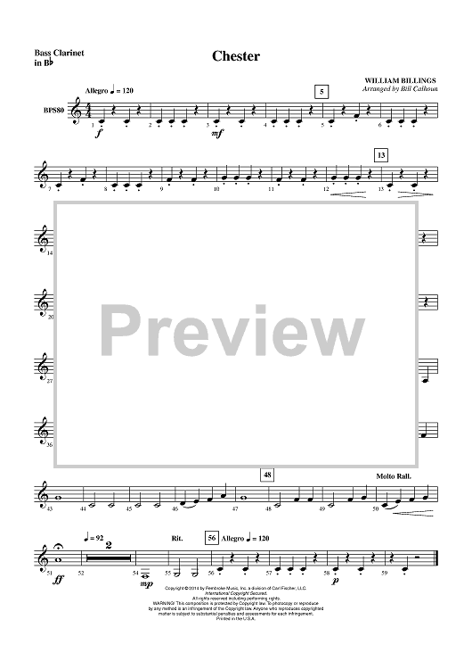 "Chester - Bass Clarinet in Bb" Sheet Music by William Billings
