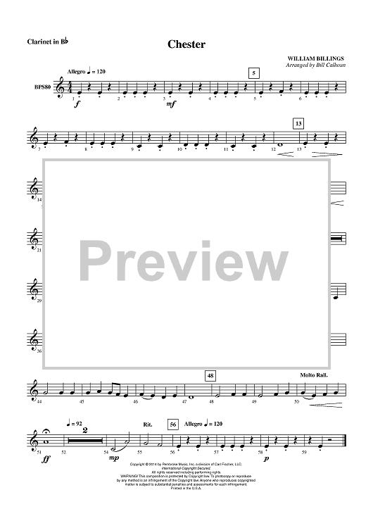 Digital Sheet Music for Chester - Clarinet in Bb by William Billings, Bill Calhoun scored for Concert Band; id:450662