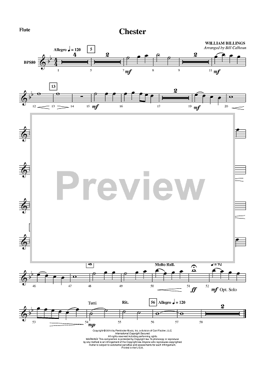 Digital Sheet Music for Chester - Flute by William Billings, Bill Calhoun scored for Concert Band; id:450660