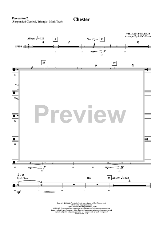 Digital Sheet Music for Chester - Percussion 2 by William Billings, Bill Calhoun scored for Concert Band; id:450675