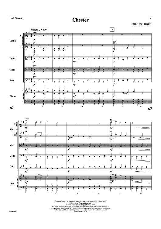 Digital Sheet Music for Chester - Score by William Billings, Bill Calhoun scored for String Orchestra; id:449771