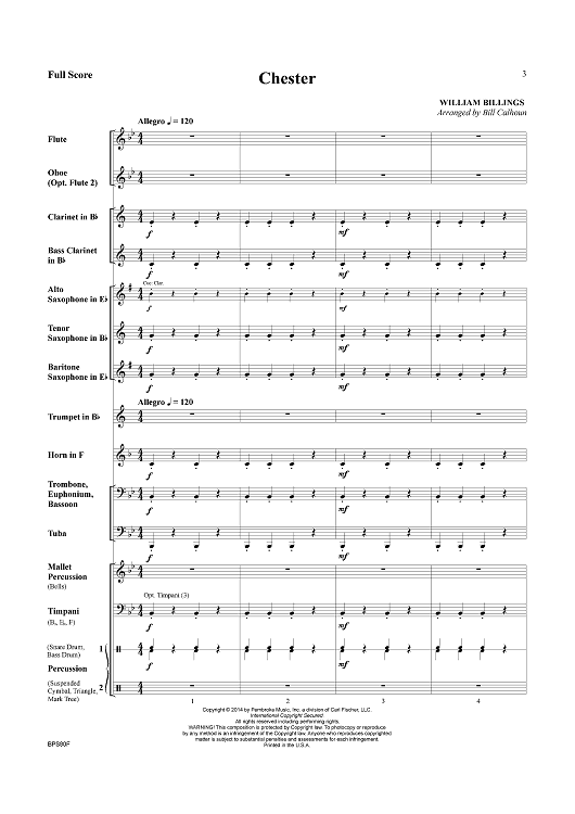 Digital Sheet Music for Chester - Score by William Billings, Bill Calhoun scored for Concert Band; id:450659