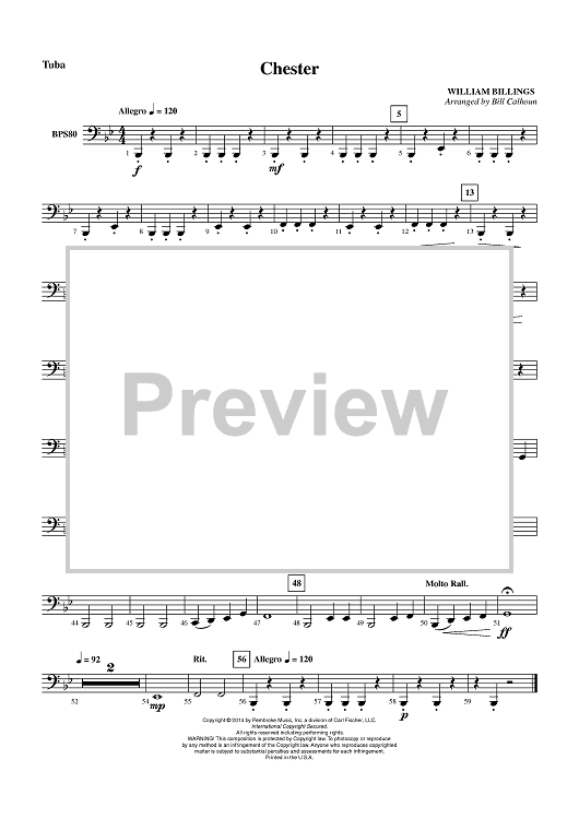 Digital Sheet Music for Chester - Tuba by William Billings, Bill Calhoun scored for Concert Band; id:450671