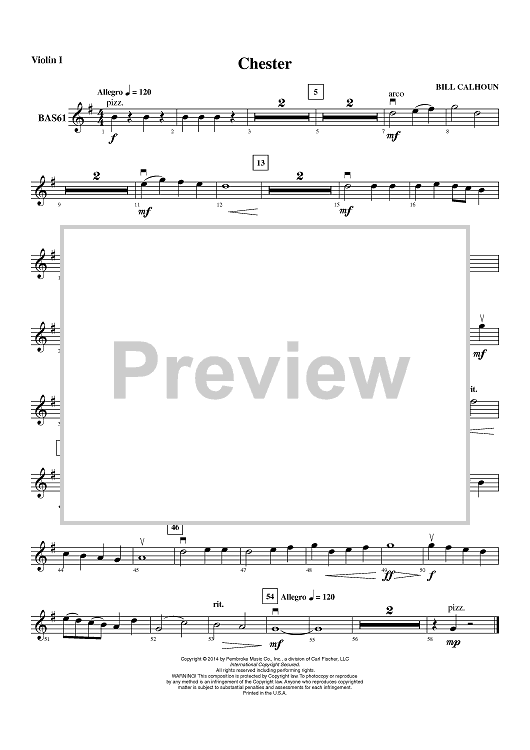 Digital Sheet Music for Chester - Violin 1 by William Billings, Bill Calhoun scored for String Orchestra; id:449772