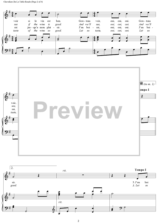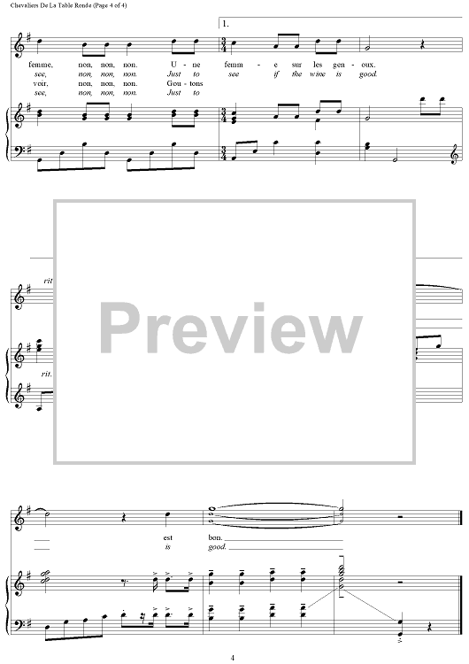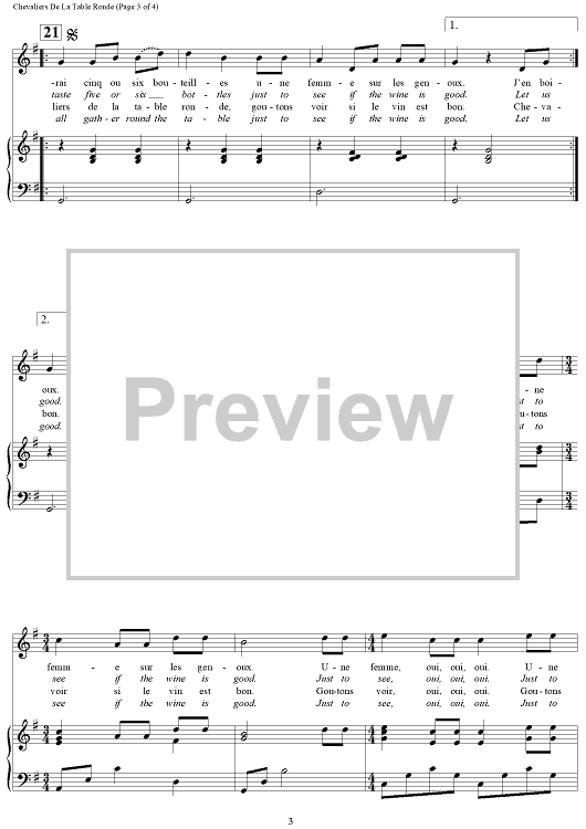 "Chevaiers De La Table Ronde (Let Us All Gather Round the Table)" Sheet Music by French Folk Song
