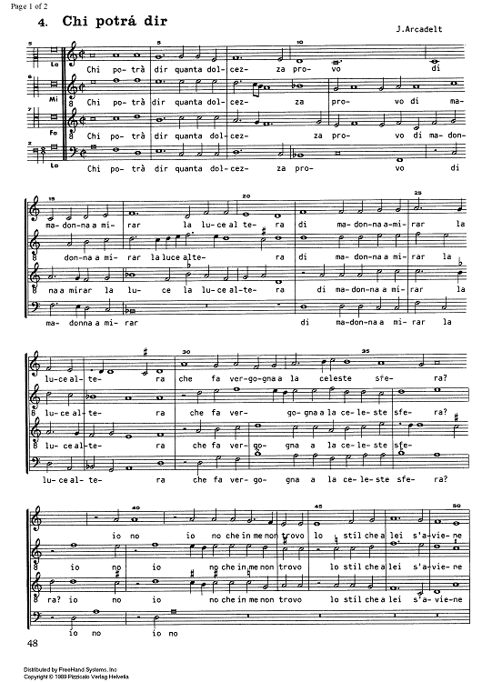 Digital Sheet Music for Chi potrà dir from 20 Madrigali - Score by , Jacques Arcadelt scored for SATB Choir; id:354364