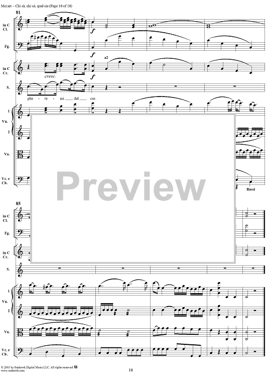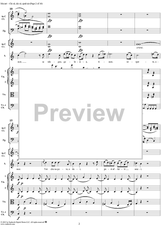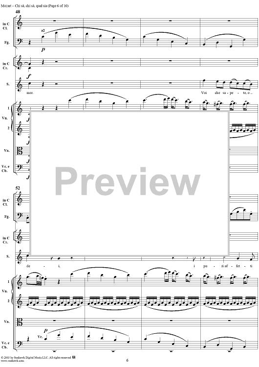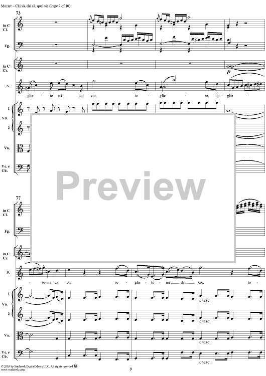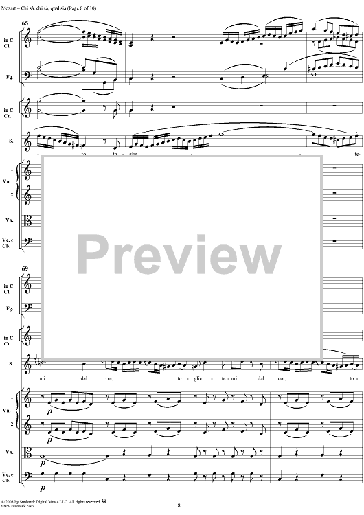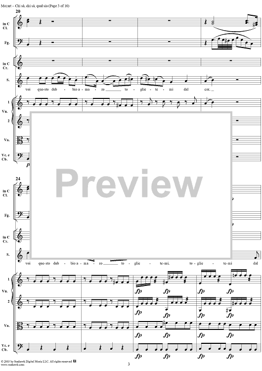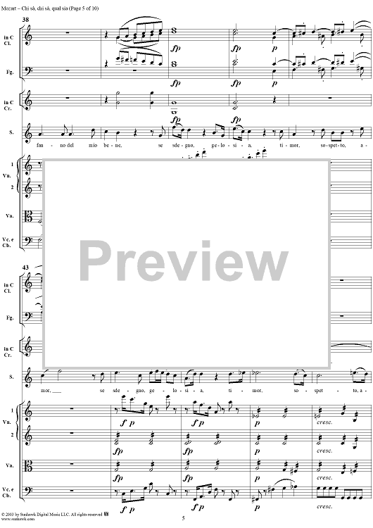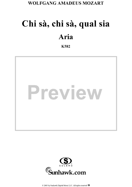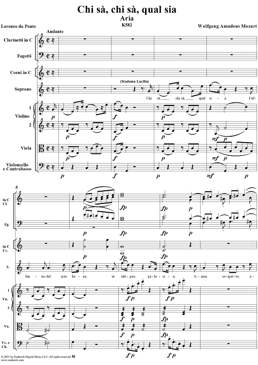 Digital Sheet Music for "Chi sà, chi sà, qual sia", aria, K582 by Wolfgang Amadeus Mozart, Lorenzo Da Ponte scored for Soprano/Orchestra; id:283322