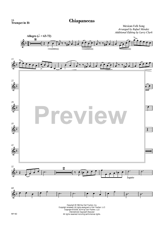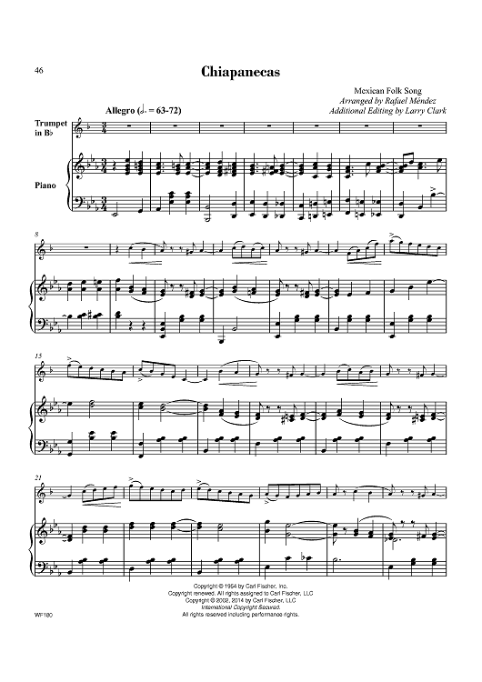 Digital Sheet Music for Chiapanecas by Mexican Folk Song, Rafael Méndez scored for Bb Trumpet/Piano; id:451713