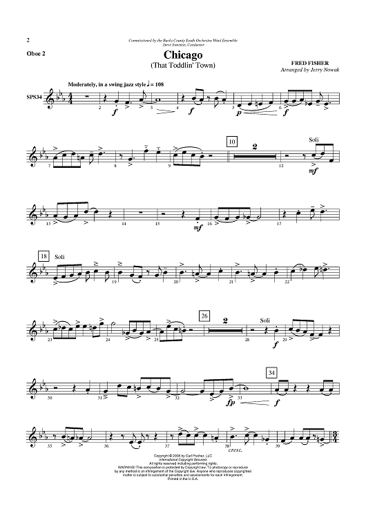 Digital Sheet Music for Chicago - Oboe 2 by Fred Fisher, Jerry Nowak scored for Concert Band; id:409394